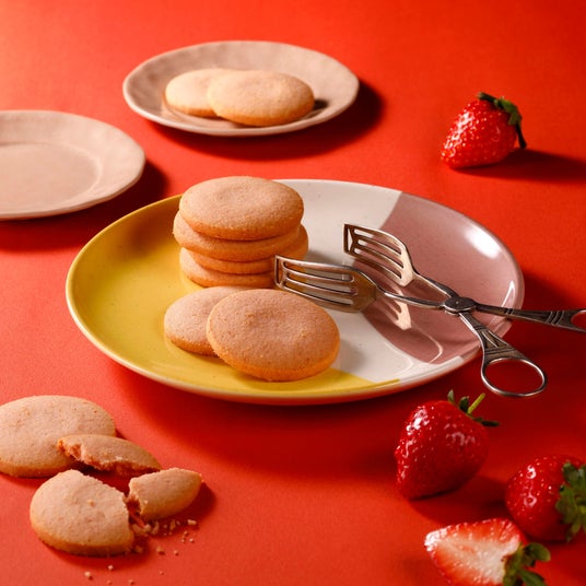 コクのある濃厚なパルメザンチーズを使用した生地に、甘酸っぱい苺ペーストなどをあわせて、サクサク食感に仕上げたクッキーです。パルメザンチーズのもつ塩味が苺の甘酸っぱさを引き立て、口に入れると優しい風味と味わいがお楽しみいただけます。
