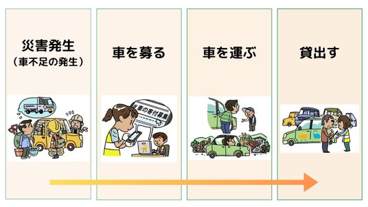 日本カーシェアリング協会は全国の災害現場にて「車の無償貸出し支援」を実施しており、災害時に車で困らない社会の実現に向けて取り組みを進めています。