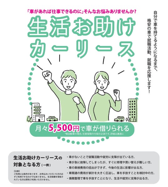 2.「車がなくて職に就けない…」そんな方を応援する『生活お助けカーリース』