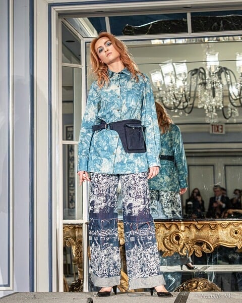 ◀イタリア人デザイナーFloraによる、栃木県佐野市の正藍染を使ったコレクション