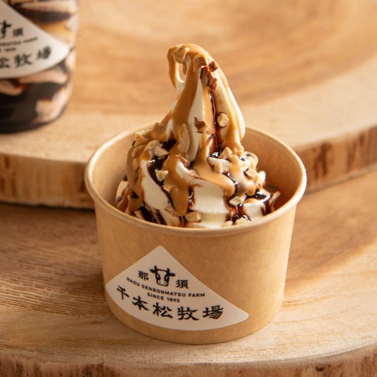 千本松ミルクソフトに、抹茶ブラウニー・ぷるぷるわらび餅・宇治抹茶ソースを贅沢にトッピングした抹茶好き必見の一品。