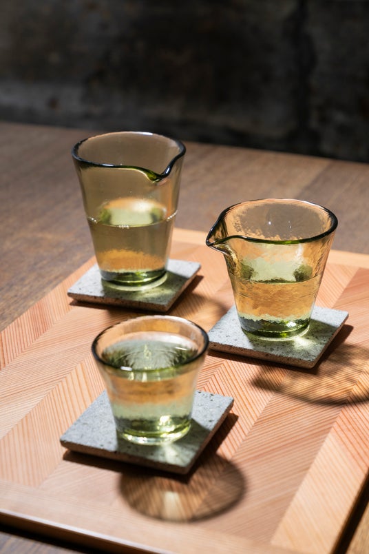 栃木県宇都宮市の大谷石を硝子にした大谷硝子の酒器、片口とぐい呑。