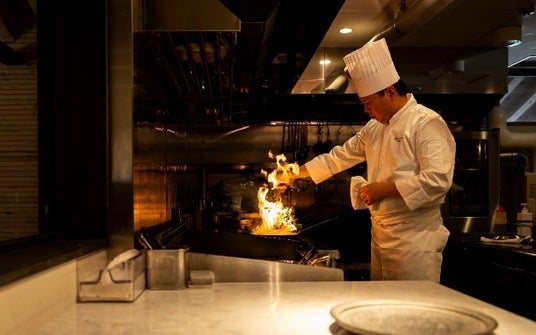 目の前に広がる四季折々の水庭を眺めながら、その日採れたばかりの地元那須の旬の食材をふんだんに使用したフレンチコースをご堪能ください。「今朝採れたものの鮮度をどう活かすか」をテーマに、総料理長 千葉拓海の感性が光る一皿一皿が、特別なひとときを彩ります。ワインはフランスワインを中心に、那須塩原のワイナリーをはじめ栃木県内や山梨、山形などのジャパニーズワインなど、ソムリエが料理に合わせて厳選したワインをご用意。お料理一皿ごとに異なるワインをペアリングすることで、それぞれの味わいを深め、より豊かな食体験をお愉しみいただけます。