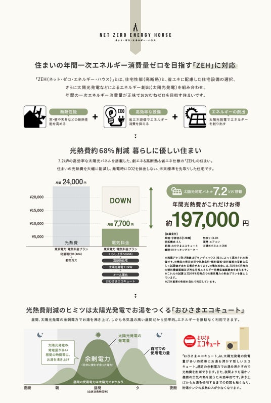 ※1注釈) ZEHなど従来の省エネ住宅の水準を大きく上回る省エネ住宅で、子育てグリーン住宅支援事業(補助金事業)の新区分として新たに設けられた住宅です。東峰テラスのモデルハウスはGX志向型住宅の性能を有していますが、子育てグリーン住宅支援事業の補助は受けられません。
