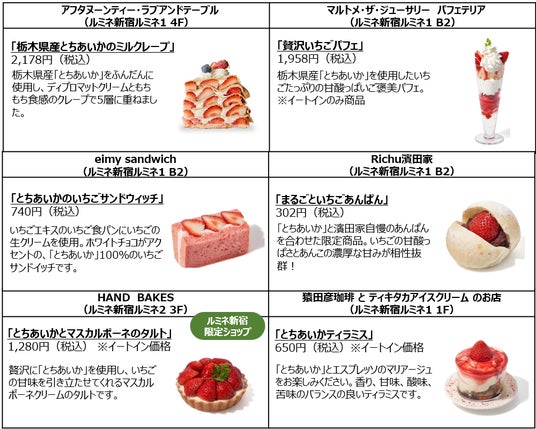 大粒で甘みが強い「とちあいか」を味わえる限定メニューを豊富にご用意しています。冬のお出かけにぜひ新宿エリアのルミネ・ニュウマンへお越しください。