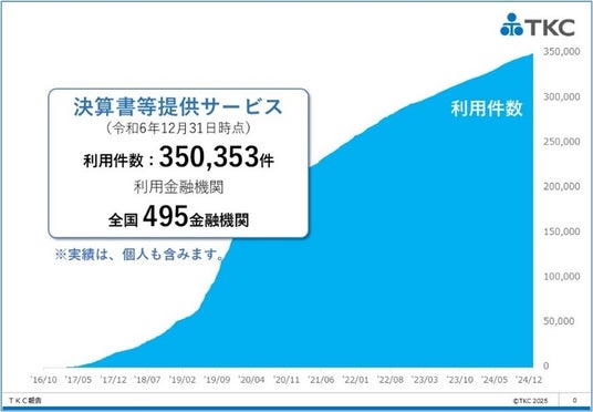 株式会社TKC(本社:栃木県宇都宮市/代表取締役社長:飯塚真規)が提供するFinTechサービス「TKCモニタリング情報サービス」の利用件数が、35万件を突破したことをお知らせいたします。
