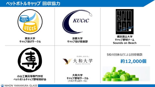 東京大学、京都大学、横浜国立大学、小山工業高等専門学校、大和大学などの学園祭で、当該学校に所属し日本キャップ野球協会に加盟しているサークルや団体により行い、合計で約12,000個のペットボトルキャップを回収することができました。