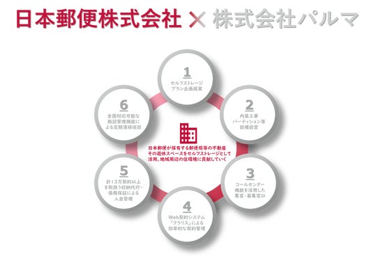 株式会社パルマ(以下「当社」)は、日本郵便株式会社(以下「日本郵便」)が出店予定の下記の郵便局におけるセルフストレージ施設の開業から開業後の運営をサポートする、当社のセルフストレージ関連サービスを提供することを合意いたしました。