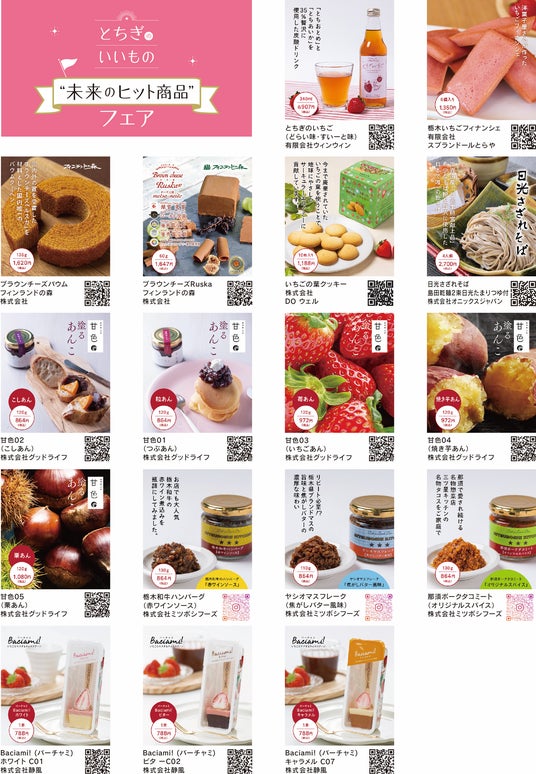 栃木県は、“食”をテーマに地域経済が成長・発展し、活力あふれる“フードバレーとちぎ”を目指す取組の一環として、2024年度に実施した「ヒット商品創出支援事業」で生まれた一部商品について、テストマーケティングを目的とした販売フェア第2弾を開催します。今回は、「ニッポンの百貨をおもしろく。」というココロザシを胸に、全国各地のスグレモノを発掘、提供している「日本百貨店 にほんばし總本店」にて、3日間限定で開催します(主催:栃木県)。