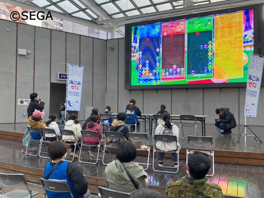 eスポGOMIでは、ごみ拾い前半戦と後半戦の間のハーフタイムに「ゲーム大会」を行うのが見どころの一つ。今回はゲームタイトル「ぷよぷよeスポーツ」でゲーム大会を行いました。下は5歳、上は70代の方まで年齢に関係なく真剣勝負が繰り広げられるなか、今回の最大連鎖数である「10連鎖」を叩き出したのは、なんと9歳の少年でした!家族全員ぷよぷよが上手で、普段はお父さんにぷよぷよを教えてもらっているそうです。プレイ中の真剣な表情がとても印象的でした。