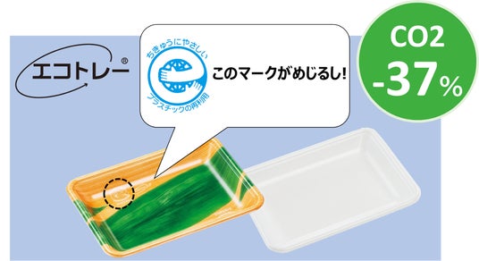 原油から新しく作るトレーにくらべると、CO2の排出量を37%抑えることができます。