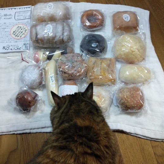 食べてみたかった猫ピロシキや色々なパンが入っていて嬉しいです。ドーナツやクッキーも甘過ぎずとても美味しく頂きました。