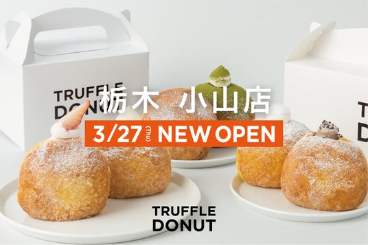 2025年3月27日(木)栃木県初となる「トリュフドーナツ 栃木 小山店」がオープンします。鳥取、鹿児島、島根、京都、大分、熊本に続くトリュフドーナツ9店舗目のオープンとなります。