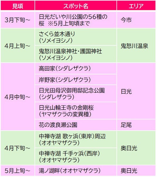 栃木県日光市及び日光市観光協会は、この春の桜の見ごろや、とっておきのお花見&夜桜スポット、季節の催事やグルメの最新情報をご案内いたします。