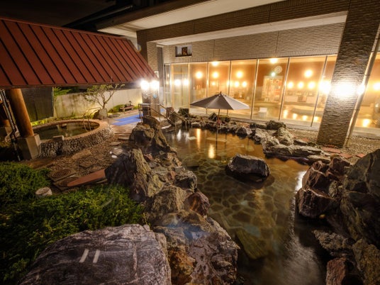 地下1,500mから汲み上げる太古の化石水型温泉。海水の半分程度の塩分を有し、非常に高い浸透性で身体を芯から温め、保温も長く持続します。