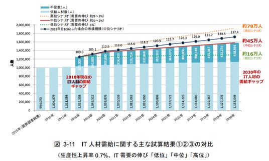 引用:平成 30 年度我が国におけるデータ駆動型社会に係る基盤整備 (IT 人材等育成支援のための調査分析事業)- IT 人材需給に関する調査 -調査報告書 経済産業省委託事業 みずほ情報総研株式会社