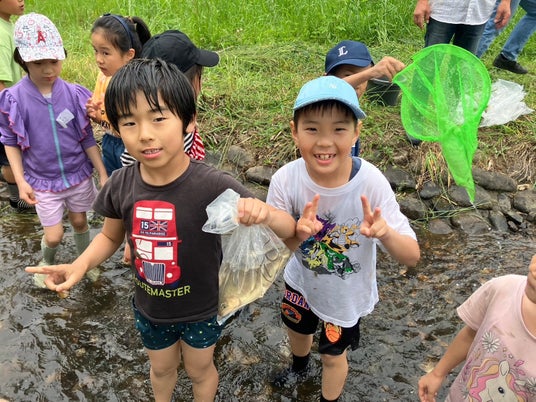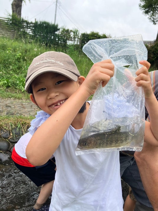 田植え体験のほか、魚のつかみ取りにチャレンジします。自分の手でつかまえたお魚は、昼食に頂きます。