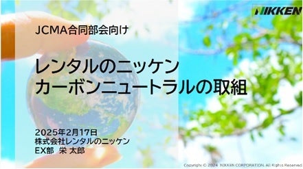 株式会社レンタルのニッケン(本社:東京都港区:齊藤良幸)は、2025年2月17日(月)に実施された一般社団法人日本建設機械施工協会(本部:東京都港区、会長:金井道夫※略称:JCMA)主催の令和6年度合同部会において当社の取り組みを発表しました。