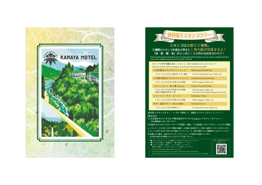 5施設に点在するスタンプを重ね捺しすることで1枚の絵が完成する周遊型のイベントです。日光金谷ホテル又は中禅寺金谷ホテルのInstagramアカウントをフォローし、完成したカードの写真と一緒にハッシュタグをつけて投稿すると抽選で、ペア宿泊券やペアランチ券、ペアアフタヌーンティー券、ホテルオリジナルグッズの豪華プレゼントが当たります。