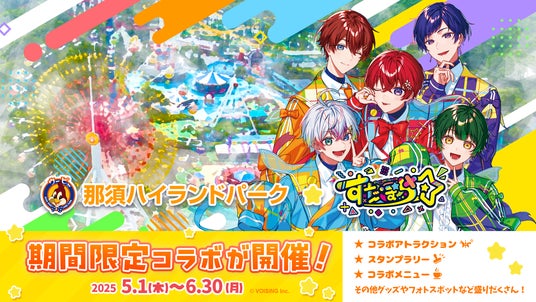 栃木県那須町にある北関東最大級の遊園地「那須ハイランドパーク」(所在地:栃木県那須郡那須町高久乙3375)は、大人気歌い手グループ「すたぽら」の4周年を記念したコラボイベント「那須ハイランドパーク×すたぽら」を、2025年5月1日(木)から6月30日(月)まで開催いたします。