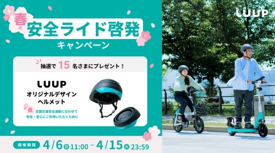 電動アシスト自転車や電動キックボードを安全・安心にご利用いただけるよう、LUUPオリジナルデザインのヘルメット(※3)を、抽選で15名様にプレゼントする「春の安全ライドキャンペーン」を実施します。