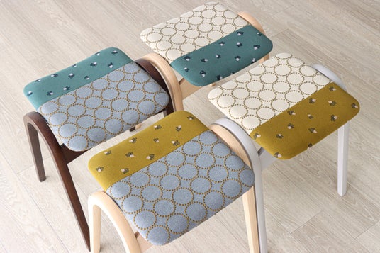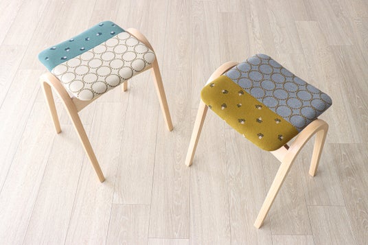 今回のプロジェクトは過去のマクアケプロジェクトにて大変反響の大きかった、日本を代表する家具メーカー「秋田木工」の名作スツールに、「ミナ ペルホネン」の生地をパッチワークして張った別注モデルのニューカラー。