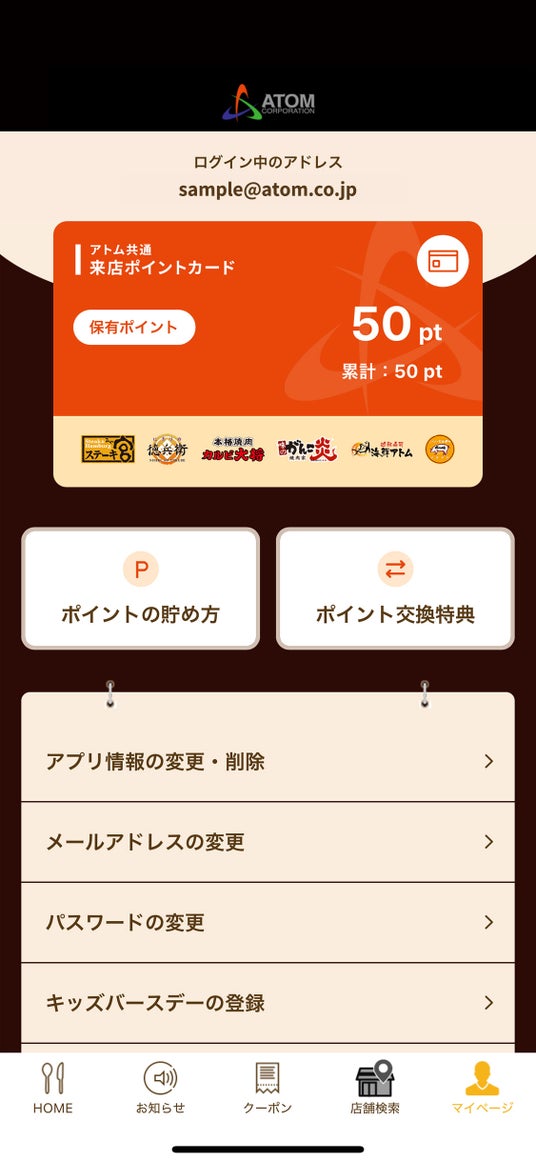 アトム共通来店ポイントカードの概要