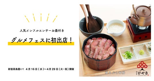 「SNSで見た、あのグルメが実際に食べたい!」そんな夢がかなう、話題のグルメイベントが新宿高島屋にて開催されます。2025年4月16日(水)から29日(火・祝)の14日間、新宿高島屋で開催される人気催事「春の美味コレクション」では、SNS総フォロワー2,500万人を超えるグルメ系インフルエンサー3名が推薦する注目店が集結する「むにぐるめ・ゆうとグルメ・はらぺこグルメ日記のグルメフェス」も同時開催されます。本イベントにて「牛たん けやき」は、看板メニュー『特選牛たん櫃まぶし御膳』(税込3,300円)で初出店します。SNSでも話題の“ときめく牛たん”を、イートイン形式でぜひ、お楽しみください。
