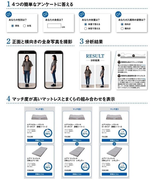 MuAtsu(ムアツ)を中心にさまざまな寝具を販売している昭和西川株式会社(所在地:東京都中央区、代表:西川惠)は、睡眠環境をより豊かにするための “3Dボディフィッティングシステム”を導入。AI技術を活用したシステムを取り入れ、よりパーソナライズされたマットレスと枕をご案内しています。