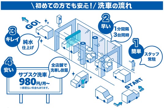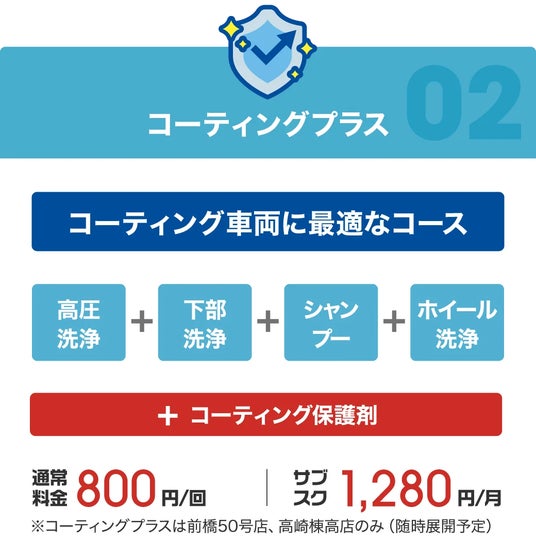 拭き上げ不要の純水仕上げ、コーティング車専用コースも完備。次世代洗車場が群馬県内4店舗目をオープン。通常月額980円のサブスクが初月39円のオープン記念キャンペーンを実施。都度利用ももちろん可能!