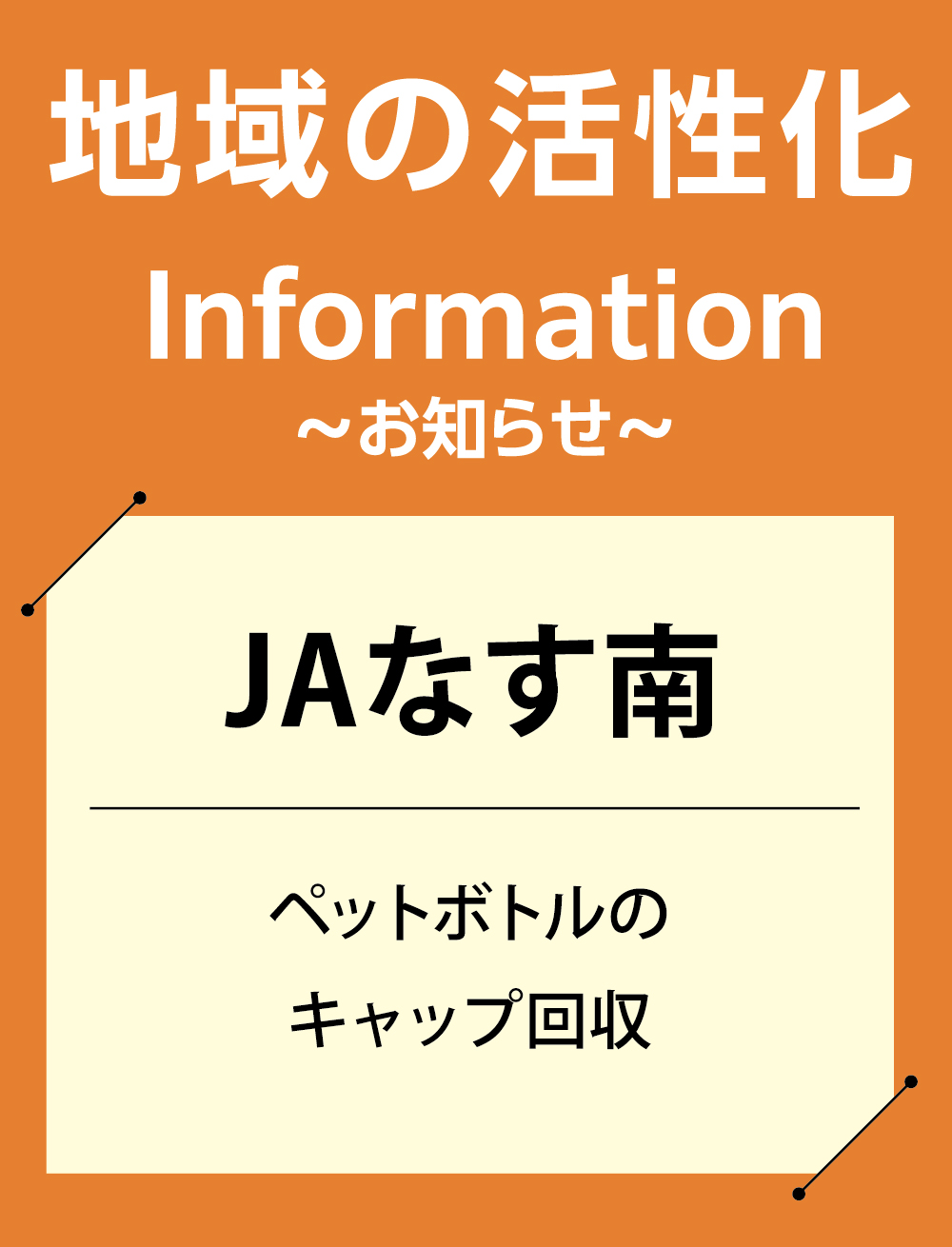JAなす南では、この他にも女性会等が中心となって食料品を地元社会福祉協議会に寄付するフードドライブ活動を展開中。新年度もペットボトルのキャップの回収とフードドライブを柱に社会に貢献する活動を地元の人たちと一緒に取り組んでいくそうです。問い合わせは、JAなす南経済部生活福祉課☎0287・96・6176。