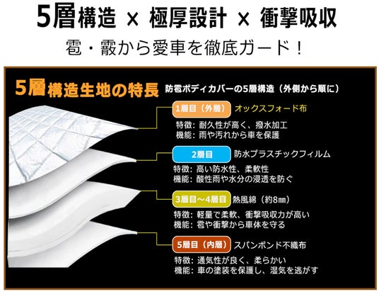 雹害多発を受け、損保提携で極厚5層構造雹対策カバーをボディタイプ別×サイズ別に展開、特別価格で提供開始。