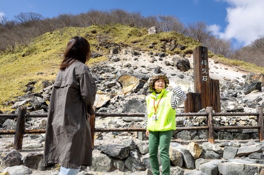 那須町の散策と湯もみ体験を楽しめるよう、殺生石の伝説や那須の湯もみの歴史文化、湯もみの唄について、湯もみ保存会会長の齋藤留美子さんが語りべとしてお話しくださいます。