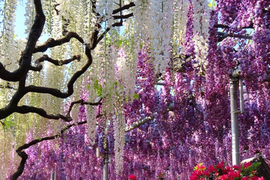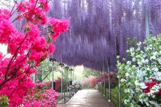 また、白藤も満開となり、早咲きのきばな藤も見頃を迎えていることから、「紫・白・黄」と3色の藤を同時にお楽しみ頂けます。