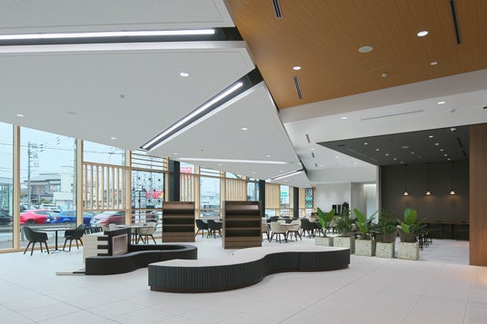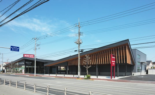 新店舗は木をふんだんに使用した和モダンな雰囲気とし、旧新町店に比べ敷地面積、ショールーム共に2倍以上とお客様の利便性や居心地の良さを大幅に向上させております。加えて、「環境への配慮」「地域との繋がり」「安心・安全」の3つの観点にこだわり抜いた地域共生型店舗です。以下、それぞれのこだわりについてご説明します。