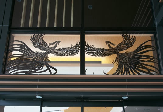 ・所在地である不動前が宇都宮の南端に位置していたことにちなみ、栃木県出身の日本画家・窪井裕美先生の原画による鉄の朱雀を入り口に、原画を商談スペースに飾っています。