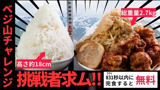 2025年6月1日(日)より、総重量2.7kg越えの爆盛メニューに挑む《ベジ山チャレンジ2.7kg~この山を登り切れるか?》を、スタートいたします。