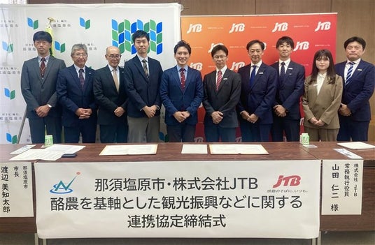 株式会社JTB(本社:東京都品川区、代表取締役 社長執行役員:山北 栄二郎、以下「JTB」)は、栃木県那須塩原市(市長:渡辺 美知太郎、以下「那須塩原市」)と2025年5月28日(水)に、那須塩原市の主力産業である酪農を基軸とした観光振興などに関する連携協定を締結しました。