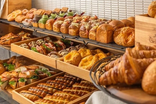店内で焼きあげる発酵バタークロワッサンや、ミニキューブパンなど約 30 種類以上のパンが味わえるベーカリーレストラン。全国4店舗目が佐野プレミアム・アウトレットへ登場。