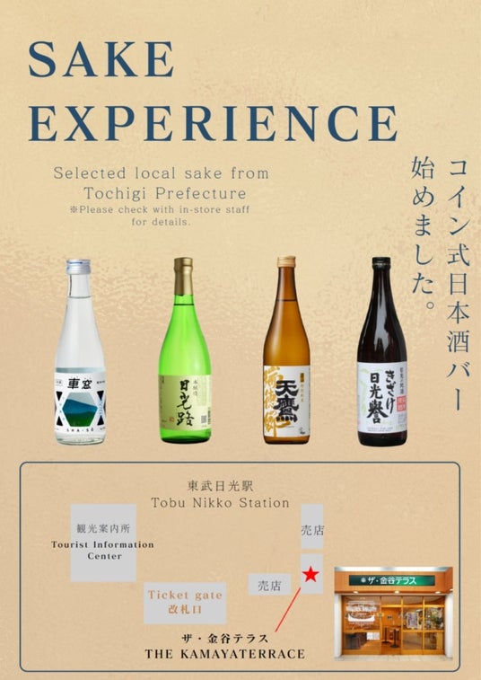 東武鉄道株式会社と金谷ホテル株式会社は、東武日光駅構内のカフェ「ザ・金谷テラス」において、コイン式日本酒サーバーを設置し、栃木県の地酒を気軽に楽しめるサー ビスを2025年5月30日(金)より、期間限定で開始します。