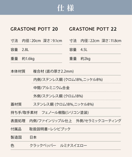 株式会社ムロコーポレーション(栃木県宇都宮)は、新たなキッチンツールブランド「GRASTONE(グラストーネ)」から、休日のシェフが使いたくなる鍋「GRASTONE POTT (グラストーネ ポット)」を2025年7月1日(火)に公式ECストアから正式発売いたします。