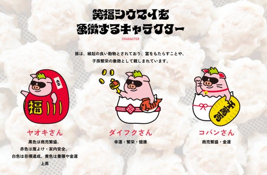 新サイトでは縁起のよいキャラクターがお出迎え
