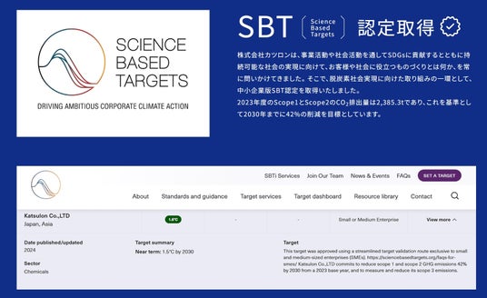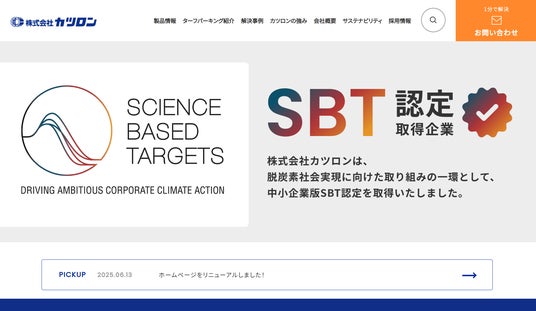 カツロンは、SBT(Science Based Targets)認定を取得し、国際基準に基づいたCO2排出削減目標を設定しました。リニューアル後のホームページでは、この取り組みの進捗を図表で分かりやすく紹介し、企業としての環境責任を明確に発信しています。