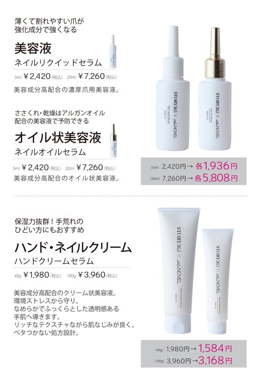 - ネイルケア商品はもちろん、ハンド・フェイスケアにもおすすめの美容アイテムを店舗にて特別価格で販売