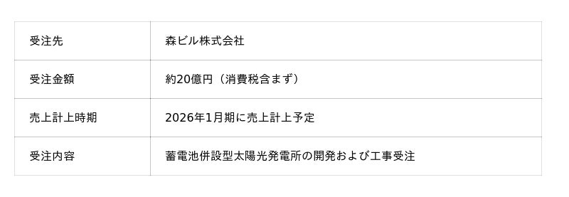 この度、株式会社テクノロジーズの連結子会社である株式会社エコ革は、2025年5月9日付「大型受注に関するお知らせ」にて公表のとおり、再エネソリューション事業において森ビル株式会社(本社:東京都港区)から太陽光発電設備に関する複数案件を受注することをお知らせしておりましたが、茨城県日立市案件および栃木県栃木市案件について、それぞれが6月20日付および7月2日付にて正式に契約を締結しましたのでお知らせいたします。