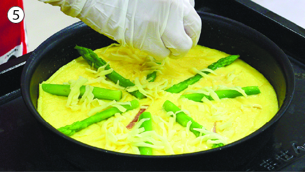 • アスパラガスが沈まないように、少し焼き固めたところに載せるときれいな仕上がりになります♪