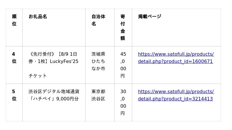 <関東版>2025年上半期ふるさと納税人気お礼品ランキング詳細は以下よりご確認ください。