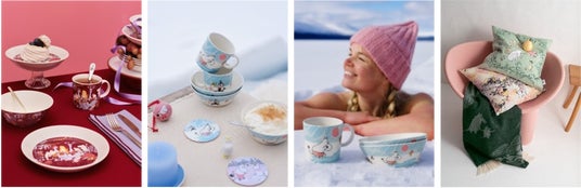 10月2日(木)からは、冬のはじまりを爽やかに彩る限定コレクション「Ice Swimming(アイス スイミング)」、10月31日(金)からは、ホリデーシーズンを彩るコレクション「Festive Moments(フェスティブ モーメント)」を展開。さらに、ブランド初となるリビングルーム向けフルコレクション「Living Room(リビングルーム)」を10月以降順次発売いたします。なお、「アイス スイミング」と「フェスティブ モーメント」はムーミン アラビア 直営店およびムーミン アラビア 公式オンラインストア、全国のムーミンショップにて、「リビングルーム」はファッション通販サイト「Rakuten Fashion(楽天ファッション)」のみでお買い求めいただけます。