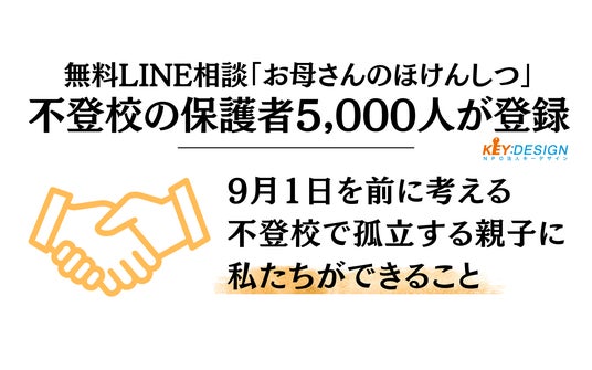 NPO法人キーデザイン(所在地:栃木県さくら市、代表理事:土橋優平)が運営する、不登校の子どもを持つ保護者向けLINE相談窓口「お母さんのほけんしつ」の登録者が、2025年8月時点で5,000人を突破しました。