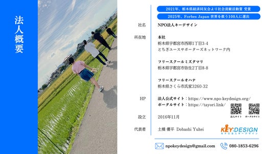 事業内容:フリースクール運営、訪問型支援、保護者向け相談事業、企業向け不登校離職防止プログラム、研修・啓発活動ほか